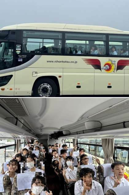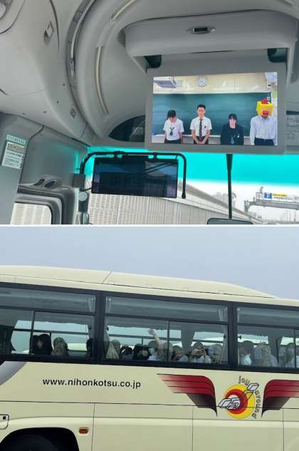車中では修学旅行実行委員が制作した動画などを見ながら過ごしてます。