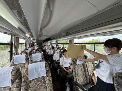 下の写真は、未災地ツアーのため三里ふれあいセンター(高知市)にむかう車中です(難読漢字クイズの様子とのこと)。