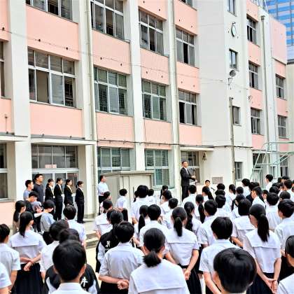 本日は運動場で全校集会を行いました。校長から挨拶(受け身の挨拶から積極的・心をこめたものに)と交通安全(自分の命を守るのは自分、周囲の状況を自らで確認を)について講話がありました。