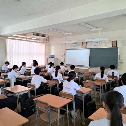 1学期最後の全校集会です。7月の全校集会は、暑さ対策のためオンラインで実施しています。