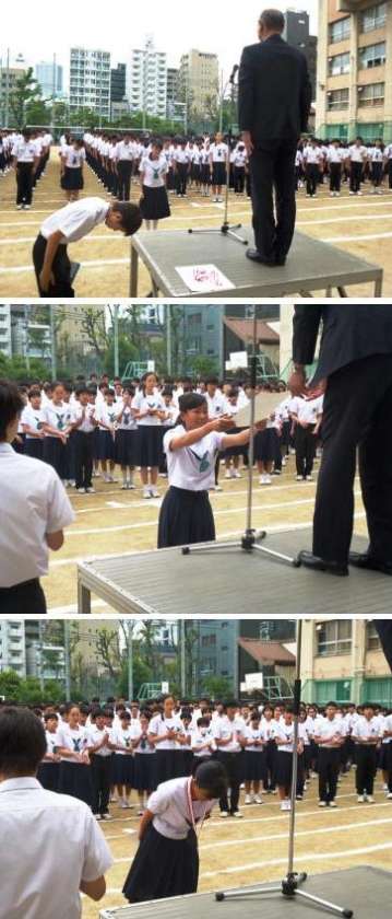 本日6月7日(火)の全校集会にて大阪市春季総合体育大会女子ソフトボールの部で花乃井中と市岡中の合同チームが第3位に輝いた表彰がありました。賞状と銅メダルの伝達を行いました。おめでとうございます♪