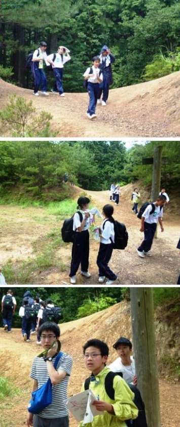 つどいの広場で昼食を食べ、オリエンテーリングに出発しました。途中から雨が降ってきたため、最後は少し切り上げになり、早めに下山しました。