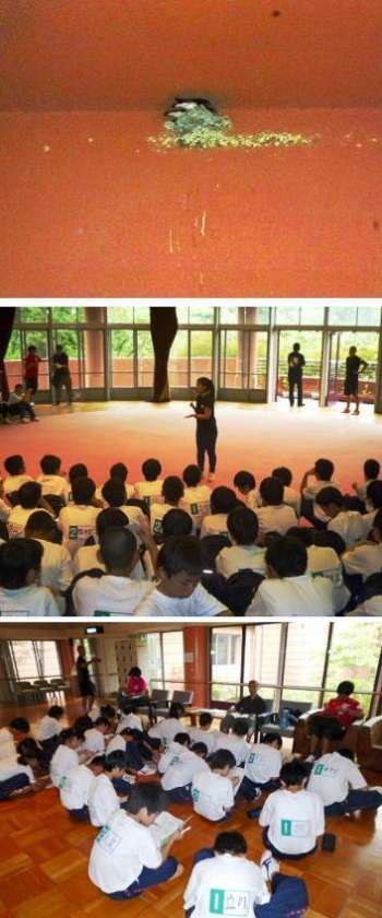 オリエンテーションホールで各クラスが歌の練習を行いました。