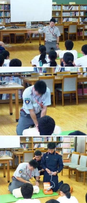 本日、7月13日(水)13:30〜16:30の時間で図書室にて、保健委員を対象に普通救命救急講習会を行いました。