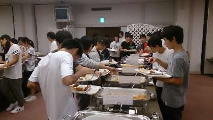 もう食べ始めている班もあれば、まだ準備中の班もあり、楽しそうな食事風景ですね♪