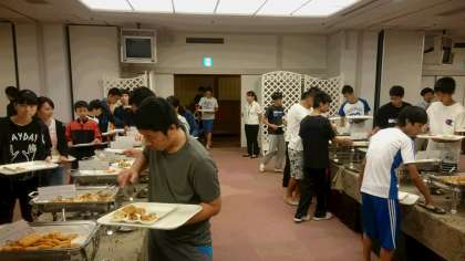 夕食は今日もバイキング形式なので何を食べるかの準備が真剣ですね♪
