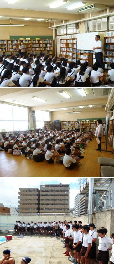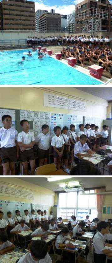 授業は前回と同じく、1年生各クラスの授業と2年生の水泳の授業を見学しました。