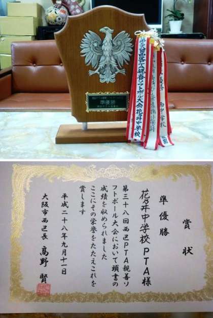 ◇第38回西区PTA協議会親善ソフトボール大会準優勝賞状及び盾◇