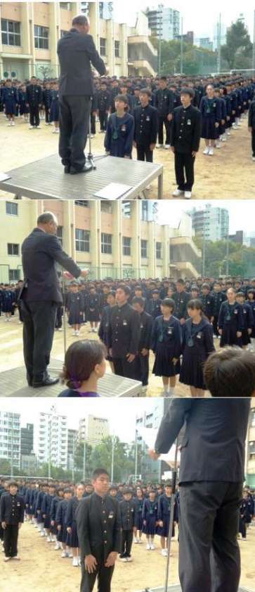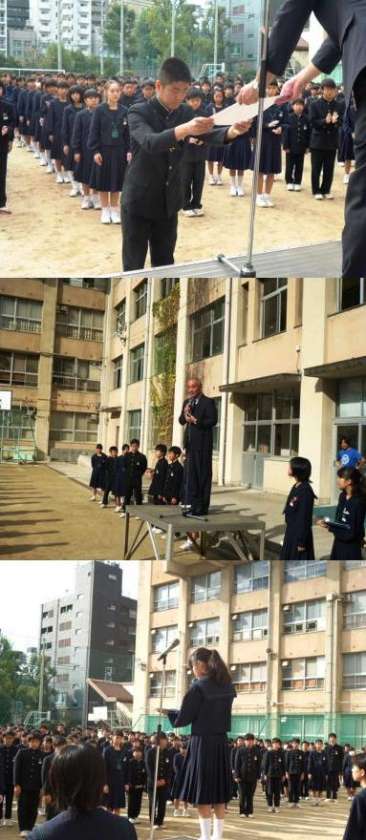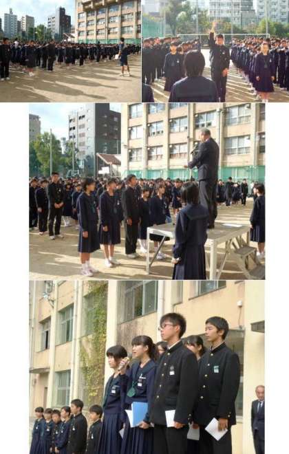 各学級の先頭に並ぶ学級代表が入れ替わり、前に並んでいる生徒会役員も一新されたので、フレッシュな全校集会となりました。