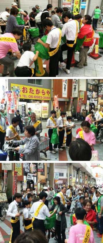 九条商店街での「ひったくり撲滅キャンペーン」に同行し、キャンペーン活動を行いました。