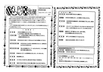 昨日12月13日(火)に本校部活部長会議より発行されたCLUB新聞第3号です。前回の会議での各部活動の反省点を振り返り、改善のための方法を考え実行していくことを確認しました。
