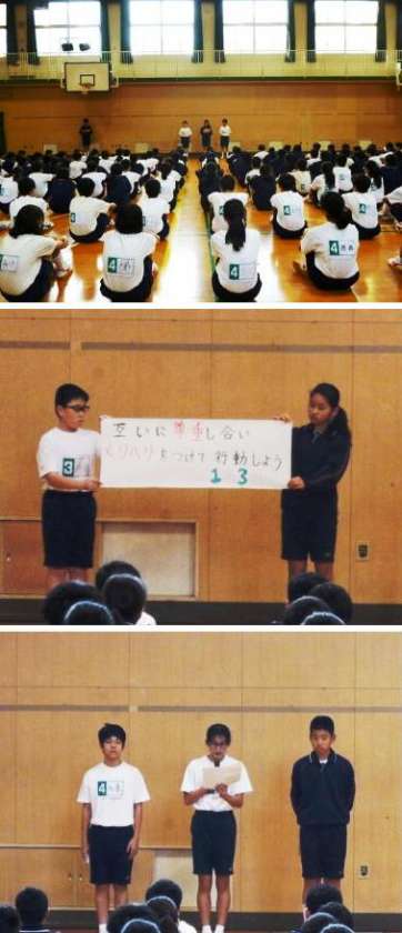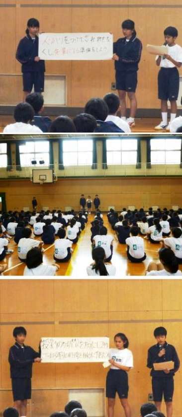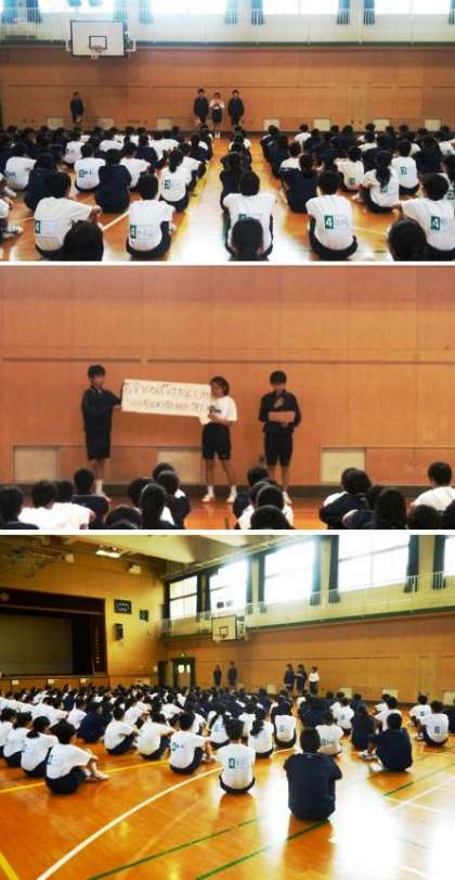 1年生は、12月21日(水)4限目に2学期の振り返りの学年集会と「花中ソーラン」の発表会を行いました。