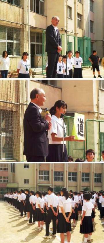 文田校長先生のお話では、冒頭に一昨日の土曜日の本田小学校、昨日の日曜日の明治小学校の運動会の観戦及び応援に行かれ、小学生たちが非常に頑張っていたとの報告がありました。