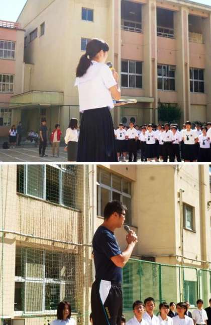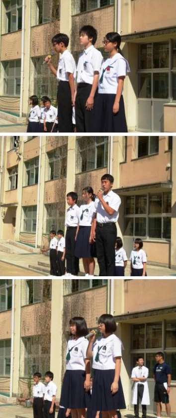 全校集会では、文田校長先生のお話、教育実習生紹介に引き続いて、各委員からの連絡がありました。