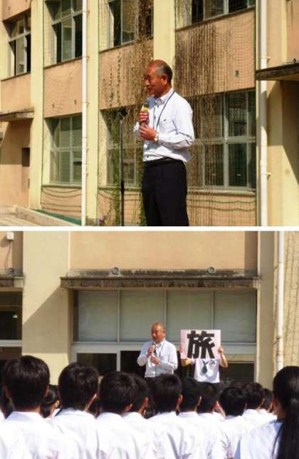先週は1年生の一泊移住、3年生の修学旅行があり、「旅」について、いろいろとお話をされました。経験したことの成果は、その後の行動によって評価されます。経験により成長した君たちを楽しみにしています。