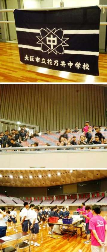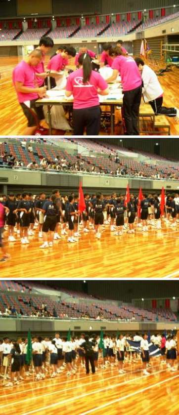 全生徒及び全教員が大阪市中央体育館に到着し、開会式が始まります。
