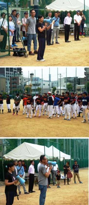 午前中の天気予報が雨だったため、開催が危ぶまれましたが、雨が降らず、好天に恵まれ、7月9日(日)第32回花乃井中学校区親善ソフトボール大会が開催されました。