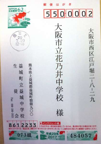 ◆熊本県益城町立益城中学校生徒会から暑中見舞いが来ました♪◆