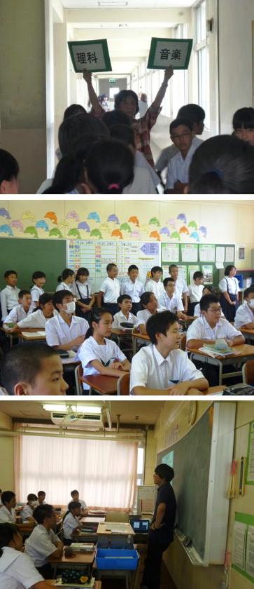 本日9月5日(火)は、昨日に引き続き、小中連携の一環として小学6年生のために中学入学前の中学校授業見学及び部活動見学を行いました。今日は明治小・西船場小学校の児童たちが来校しました。