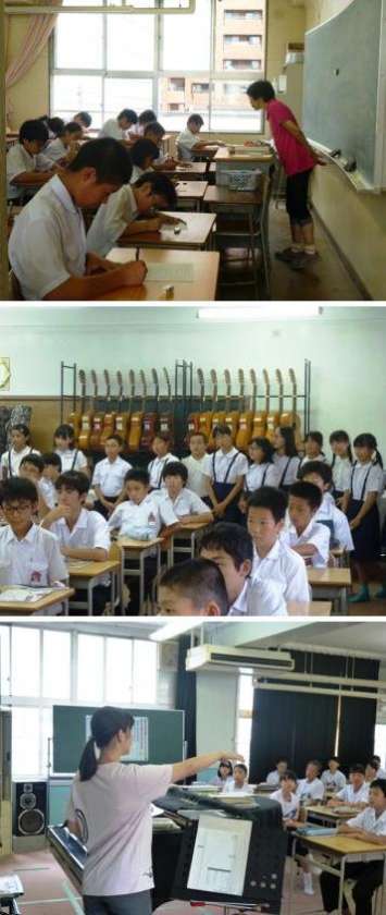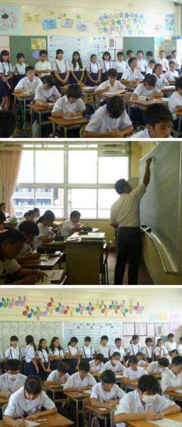 授業は1年生各クラスの授業(理科・数学・社会・音楽・保健体育)を見学しました。