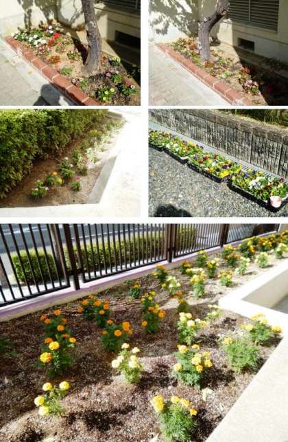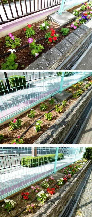 9月25日(月)に植えた花、「ベコニア」「ペチュニア」「日日草」「マリーゴールド」は順調に育っています♪