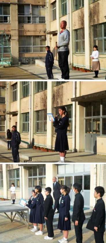 本日12月4日(月)は快晴の中、朝の全校集会を行いました。