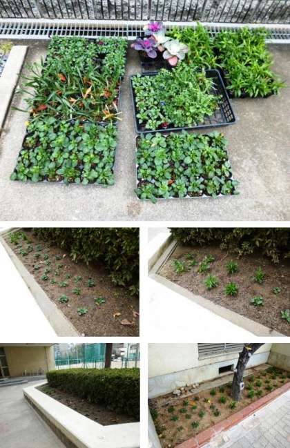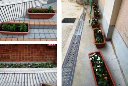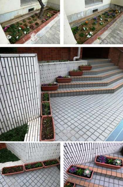 西区役所市民協働課による西区の「種から育てる地域の花づくり支援事業」の花苗を「花づくり広場」からいただき、体育館北側の花壇、体育館西南側の花壇、正門階段のプランターに植えています。