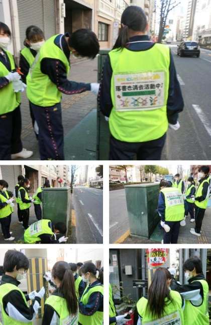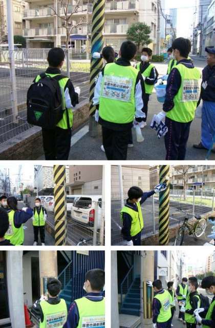 去る12月2日(土)の地域防災訓練の地域との合同訓練の中で、地域合同作業として西区役所と合同で校区内落書き消去活動を行いました。