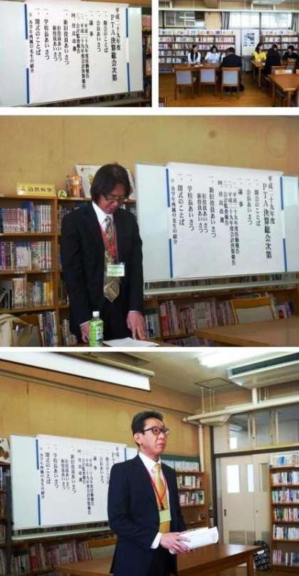 本日4月21日(土)は、授業参観・避難訓練の後、図書室にてPTA決算総会が行われ、PTA活動報告、PTA決算報告の議案がすべて承認されました。