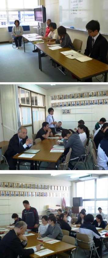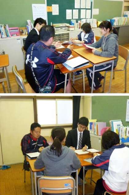 放課後には各教室で分科会を行い、会議室では授業実践チェックシートでの点検と授業研究記録用紙を元に授業研究全体会を行いました。