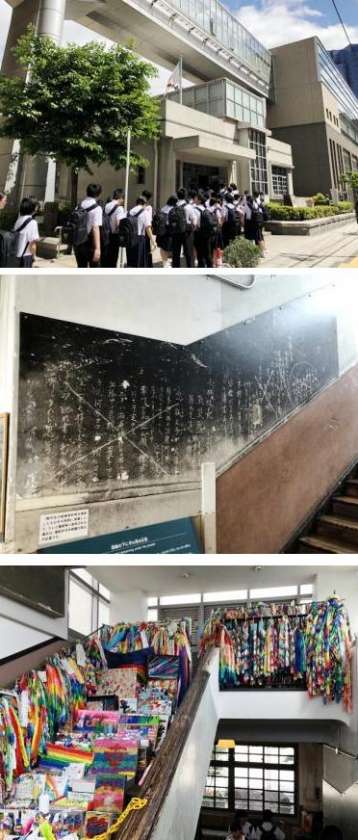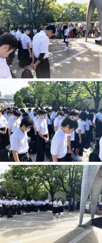 袋町小学校→フィールドワーク→平和記念資料館と班別活動を行った後、3年生全員で原爆の子の像前で平和セレモニーを行いました。
