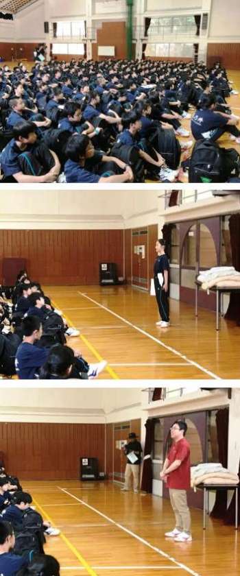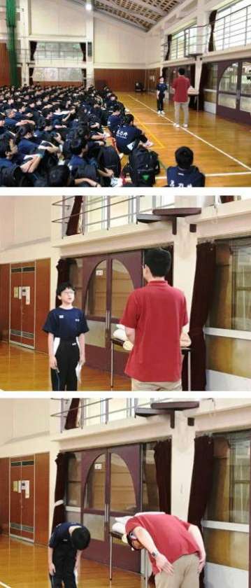 体育館に入室し、入所式とオリエンテーションを行いました。