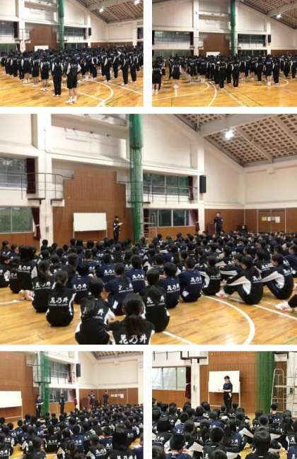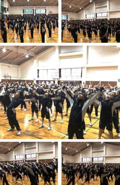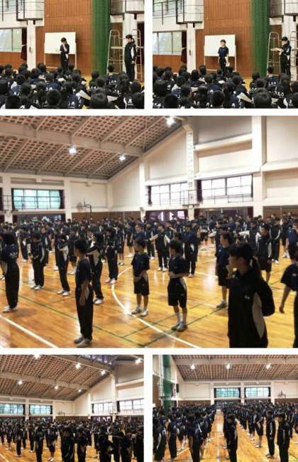 本日6月6日(水)1年一泊移住第2日目、天気予報通りのあいにくの雨のため、つどいの広場ではなく、体育館で朝のつどいを行いました。
