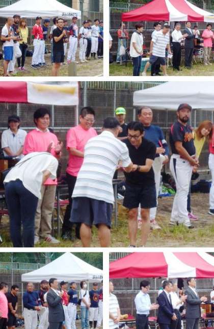 本日9月17日(月)、毎年恒例の第40回西区PTA協議会親善ソフトボール大会は曇天の中、松島球場にて8時30分より開会式が行われました。