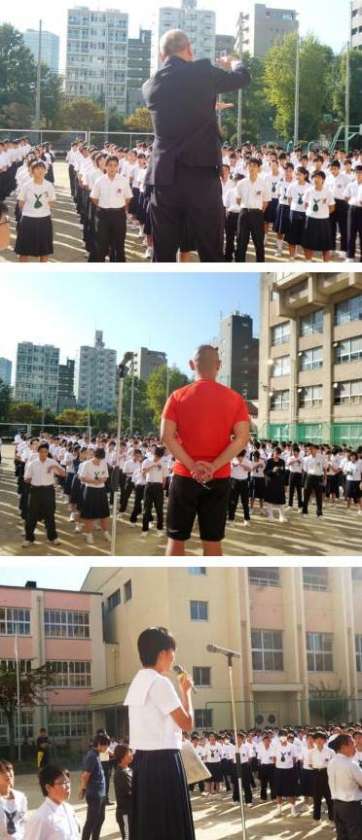 本日10月9日(火)は、3連休の後、暑いと感じる日差しの中、全校集会を行いました。