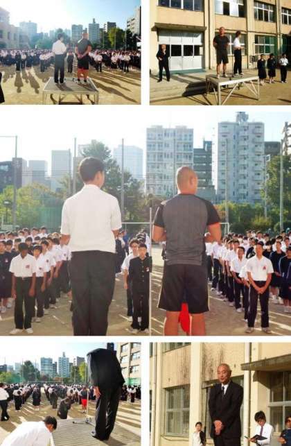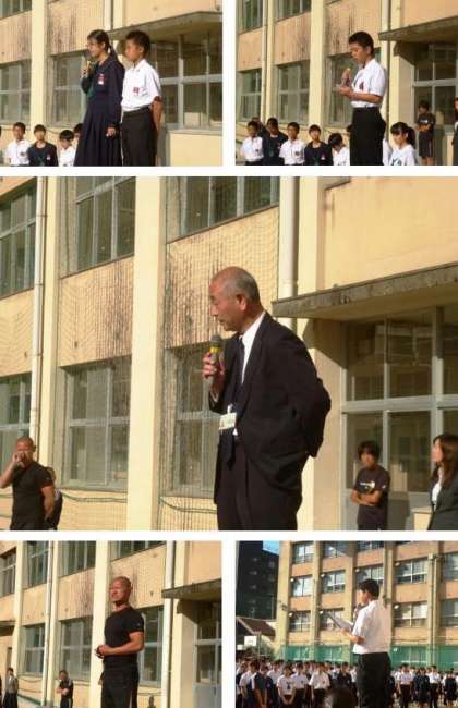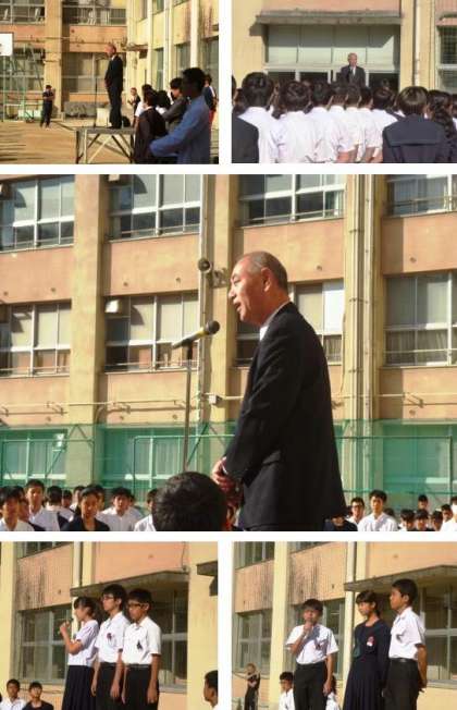 本日快晴の元、全校集会を行いました。全校生徒と文田校長先生とのあいさつの後、文田校長先生から10年後、20年後のAIの進化、ロボット化のお話がありました。現在の仕事の半分がロボット化していくことから、リーダーシップのある人材が求められていくこと等をお話されました。