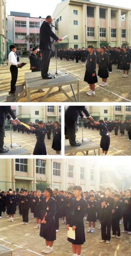 本日11月12日(月)は天気予報では肌寒い気温が予想されていましたが、ポカポカとした陽気のなか、全校集会を行いました。文田校長先生と全校生徒との挨拶の後、ソフトボール部の表彰がありました。