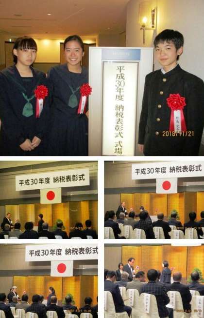 昨日の11月21日(水)に「中学生の税についての作文」の優秀作品を表彰する、平成30年度納税表彰式の賞状贈呈が「ホテル大阪ベイタワー」4階にて午後2時から行われました。