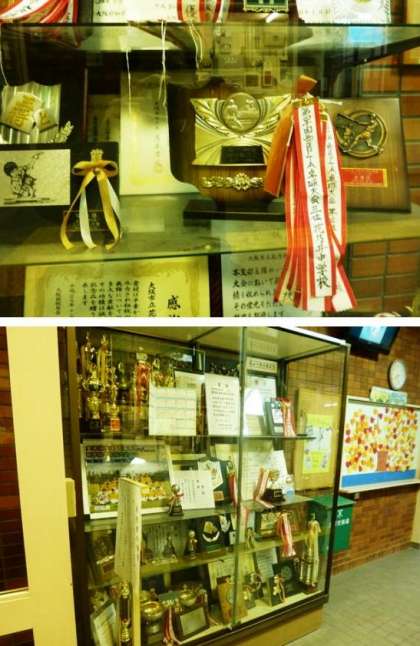 本校正門入ってすぐ左側に設置しているトロフィーケースに1年間飾らせていただきます♪