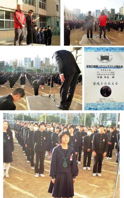 三連休明けの本日2月11日(火)の全校集会では、全校生徒とのあいさつの後、吹奏楽部のソロコンテスト大阪大会銀賞受賞の表彰を行いました。