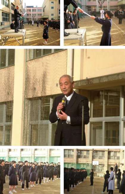 文田校長先生からは3年生に対して私立高校入試のねぎらいのお言葉の後、「叱られ方」についてのお話がありました。星稜高校時代の松井秀喜選手の5打席連続敬遠について、当時の山下監督のお話や叱られて、「ふてくされる」のは3流、下を向くのは2流、「ありがとうございました」と言えるのが1流とのお話がありました。
