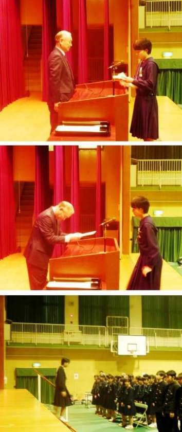 卒業証書授与(4組)、学校長式辞、在校生送辞、卒業生答辞です。