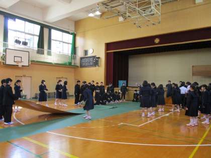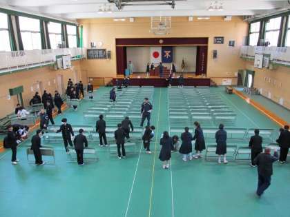 本日4月2日(火)8時40分、明日の入学式のために新2年生が登校し、校舎内や体育館周辺の清掃、式場内のシート張りや椅子並べなど完璧な準備をしてくれました。新入生のみなさん、在校生及び教職員一同、明日の入学式を楽しみにしてお待ちしています。
