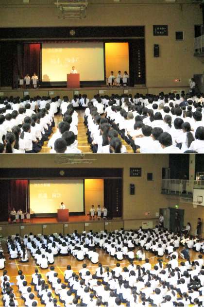 本日6時限は生徒会役員選挙でした。体育館で立候補者の演説を聞いた後、各教室で投票し、放課後に開票作業が行われました。