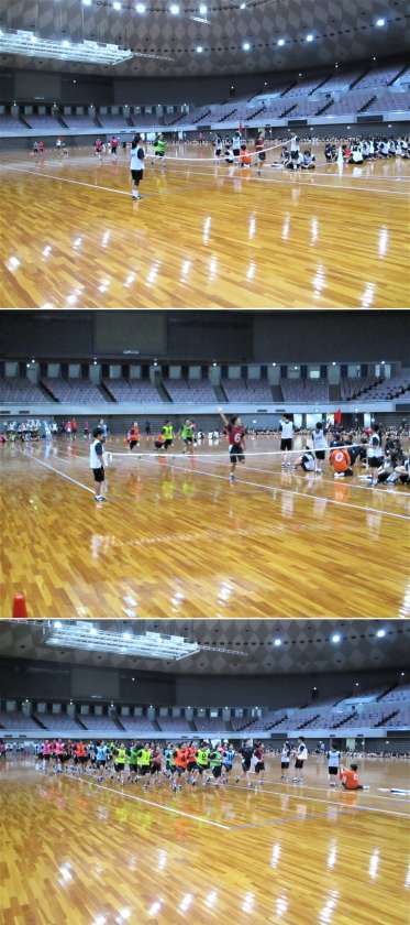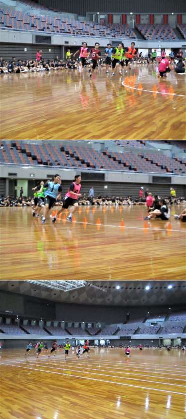 プログラム4番、100m走です。直線(途中からオープン)・曲線・直線のコースで速さを競います。