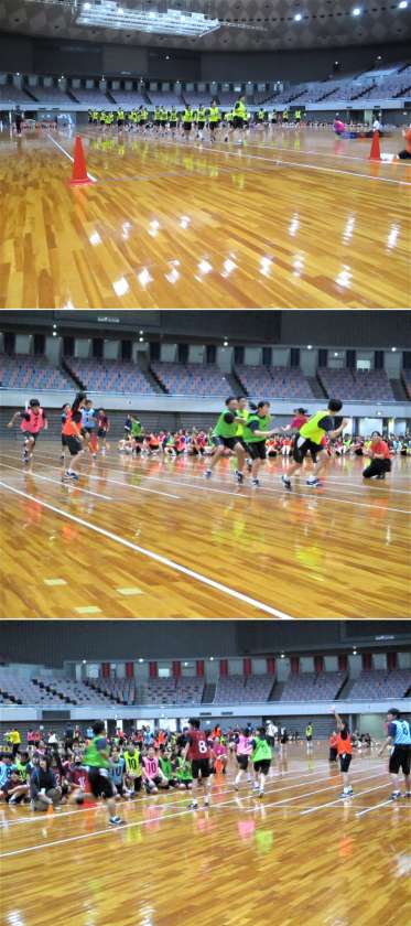 プログラム9番、3年学年種目(クラス対抗全員リレー)です。