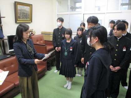 西区租税教育推進協議会・税の作品(中学生の標語)の表彰に来校いただきました。