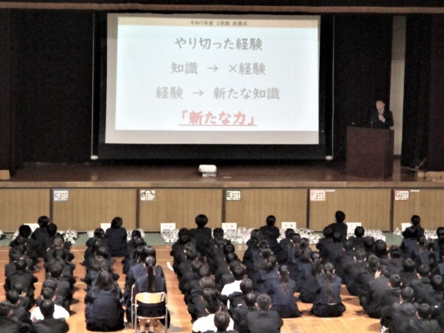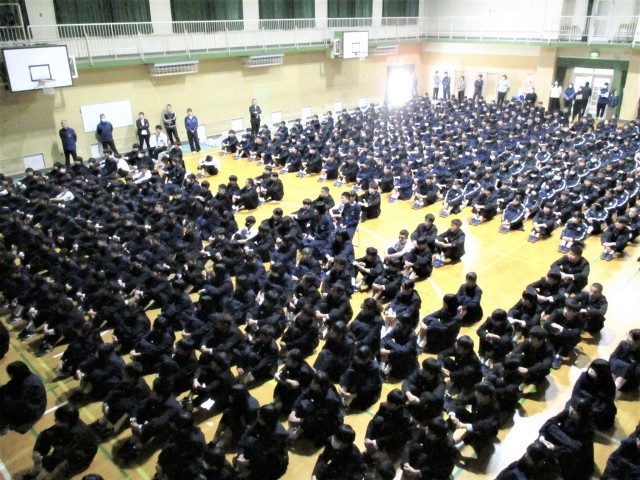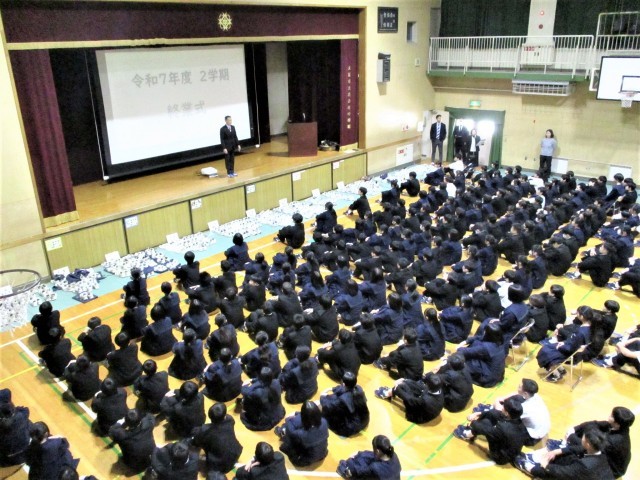 1~3時限に、学年集会、大掃除、学級活動を行い、4時限に体育館で終業式を行いました。