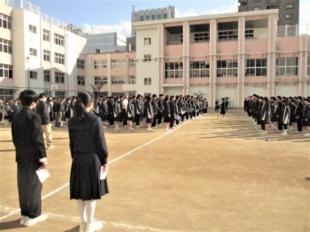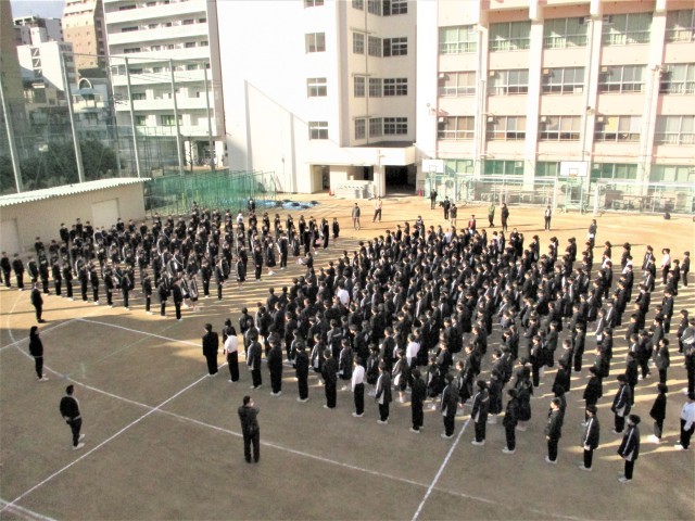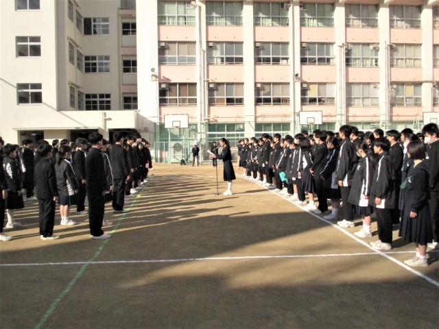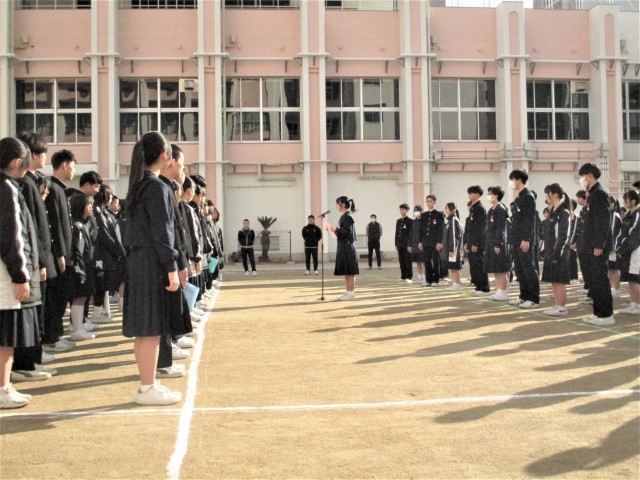 今年度の1~3学年が揃う最後の全校集会です。集会の中で「離面式」が行われました。