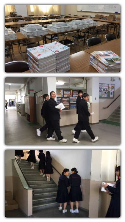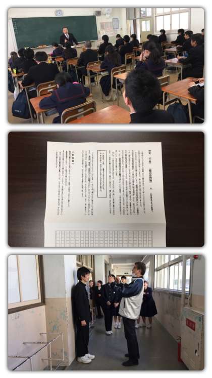 学級活動では、1年生は「自己紹介カード」の作成、2年生は「2年○組の目的地」というテーマで、どんなクラスにしたいか、そのためには自分はどんなことができるかを作文にしました。3年生は、最高学年になりどんなことを目標にしてこの1年間を過ごしていくのかを文にまとめました。また、修学旅行に向けて、民泊ステイ用の個人写真撮影をしました。